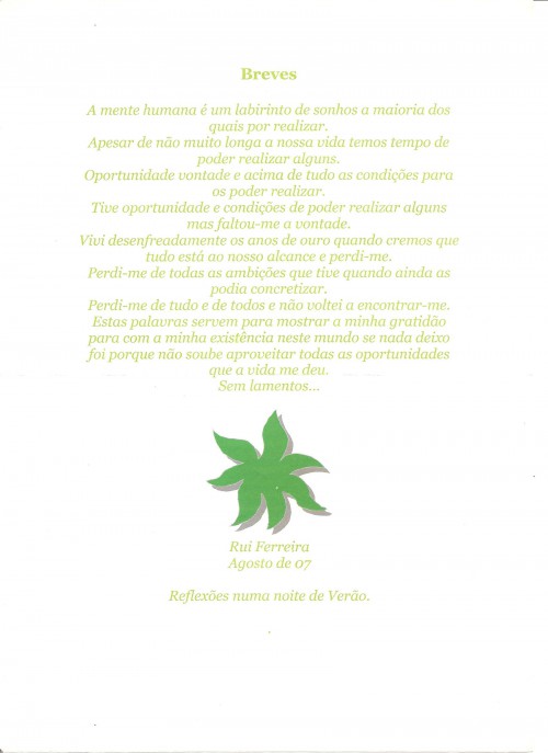 Quase três anos tem este texto e infelizmente não tenho seguido o que nele escrevi,mas como a nossa vida é uma escola de aprendizado constante penso que ainda tenho tempo.Um abraço.